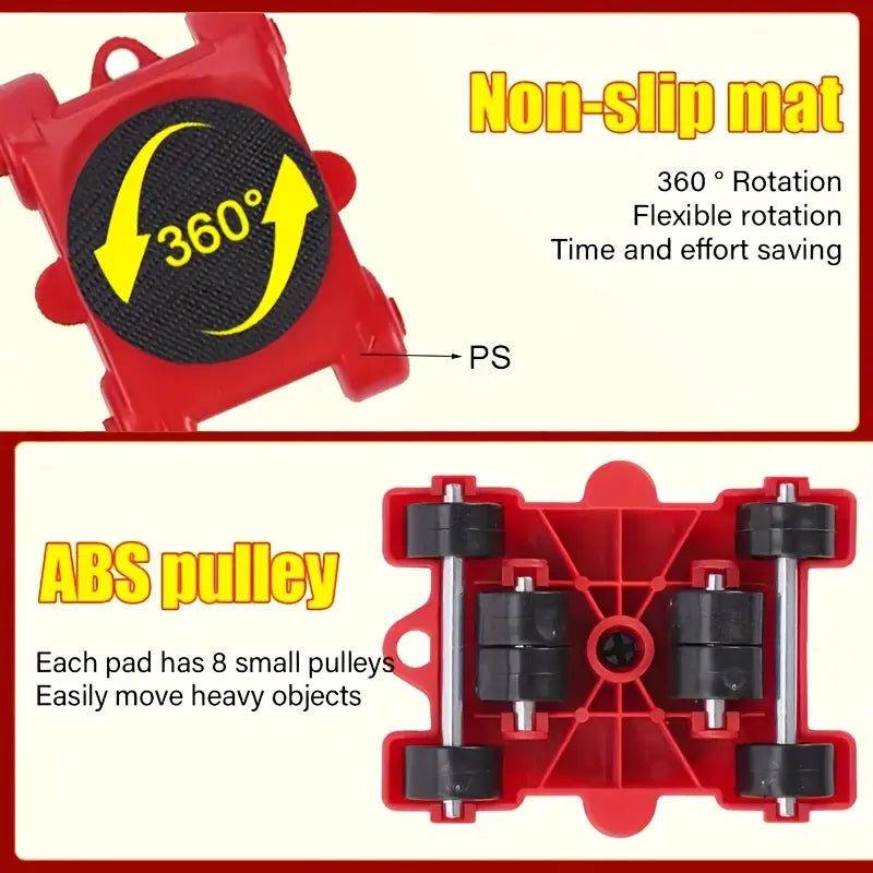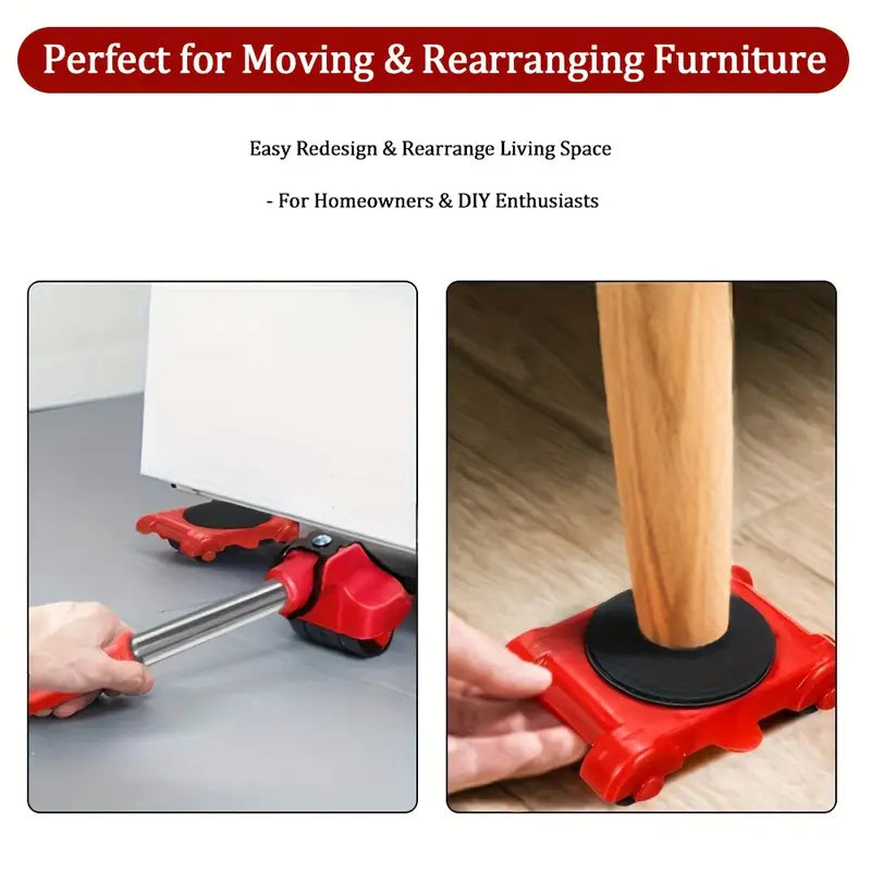 Easily move heavy furniture with this 5pcs Heavy Duty Furniture Moving Set. Designed for beds, tables, sofas, and more, these furniture mover rollers and furniture lifter moving sliders offer a powerful, reliable solution. The furniture lift allows you to raise heavy items safely, while the furniture slide kit with moving wheels for heavy furniture ensures smooth movement across floors.